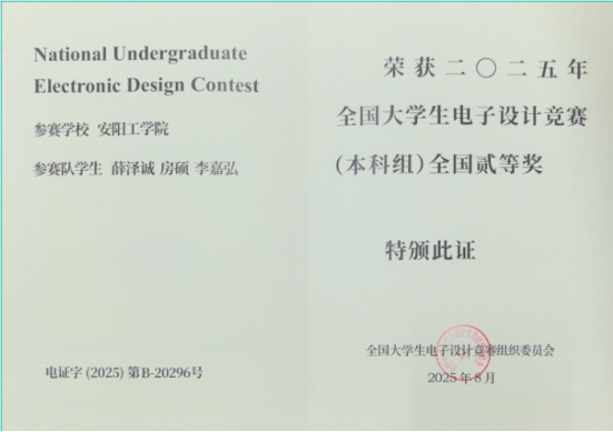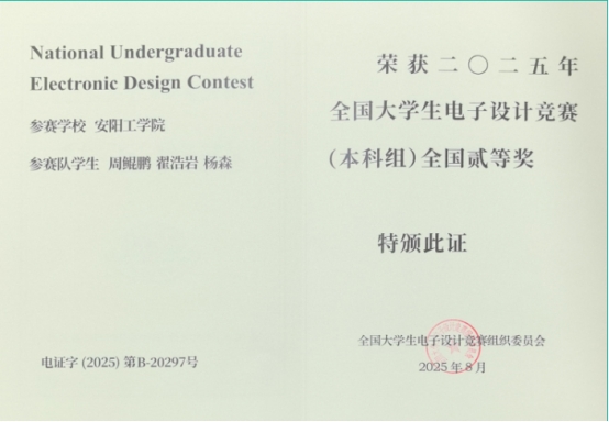 近日,2025年全国大学生电子设计竞赛的国赛成绩已公布。我院参赛学子在本次竞赛中表现卓越,发挥出色,在全国赛中获得国家级二等奖2项,并在省级赛区评选中,获得省级一等奖6项、省级二等奖5项,省级三等奖8项,充分彰显了我院在拔尖创新人才培养和高水平学科竞赛实践中的显著成效。